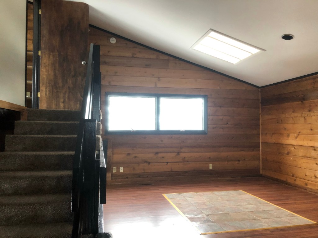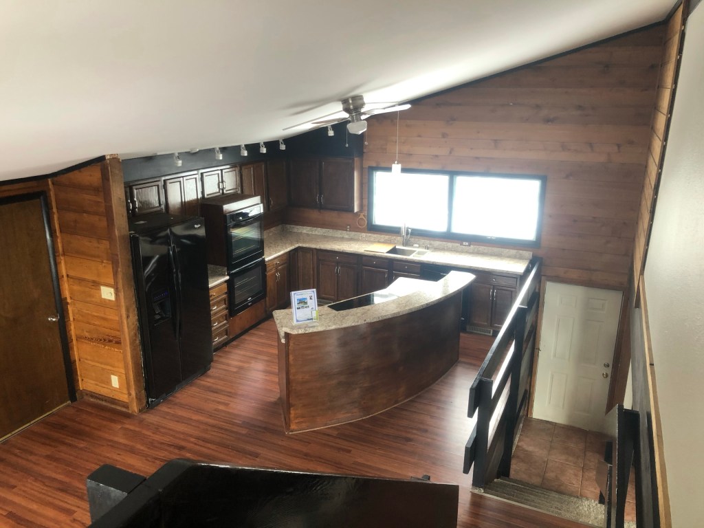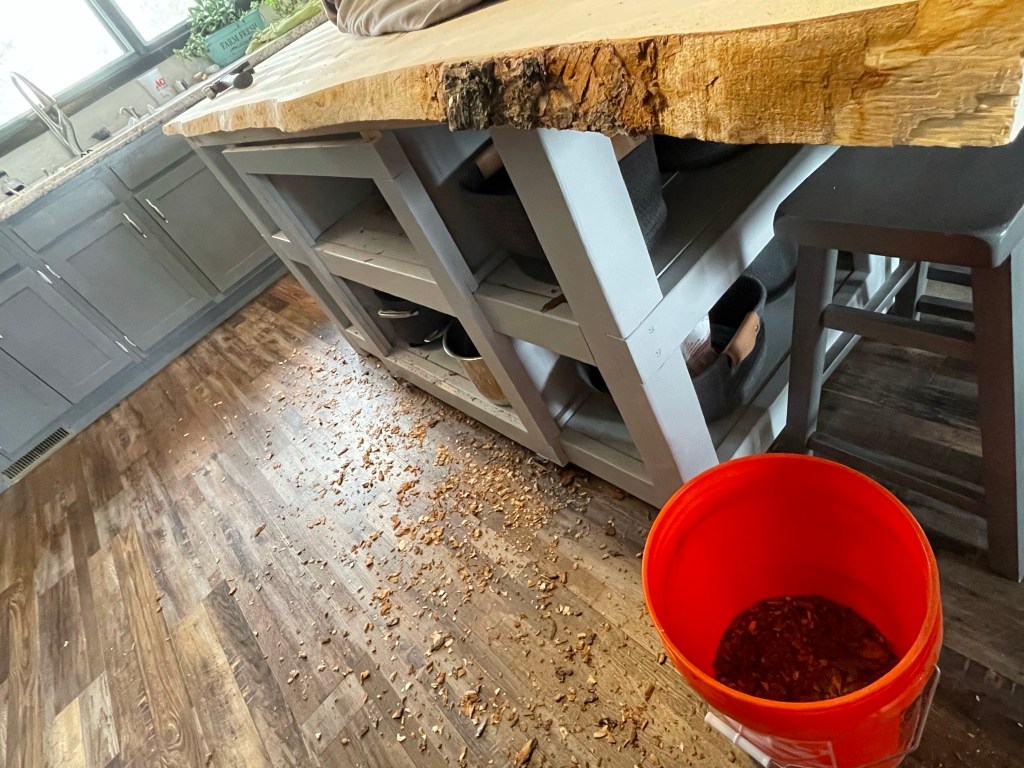 I guess since we are approaching the one year mark for moving into our house, we should give you all an update and a few pics. While some of us miss the nomadic life, we are all enjoying the creativity of making this house our home, as well as the adventure of learning to homestead. Our house is an older, half A-frame style home built in the 70’s. It was a couple rooms short, needed a bit of work all the way around, and had a water loss the week after we moved in, so we have been pretty busy. Because of the water loss, the kitchen and dining room got the attention first. Insurance covered new floors, we painted the cedar siding walls, then rebuilt and painted the cabinet doors and drawers and built a new island. I still have a few cabinet doors left to build and someday I would love to build my own table, but for now, here are a few before and after pics.