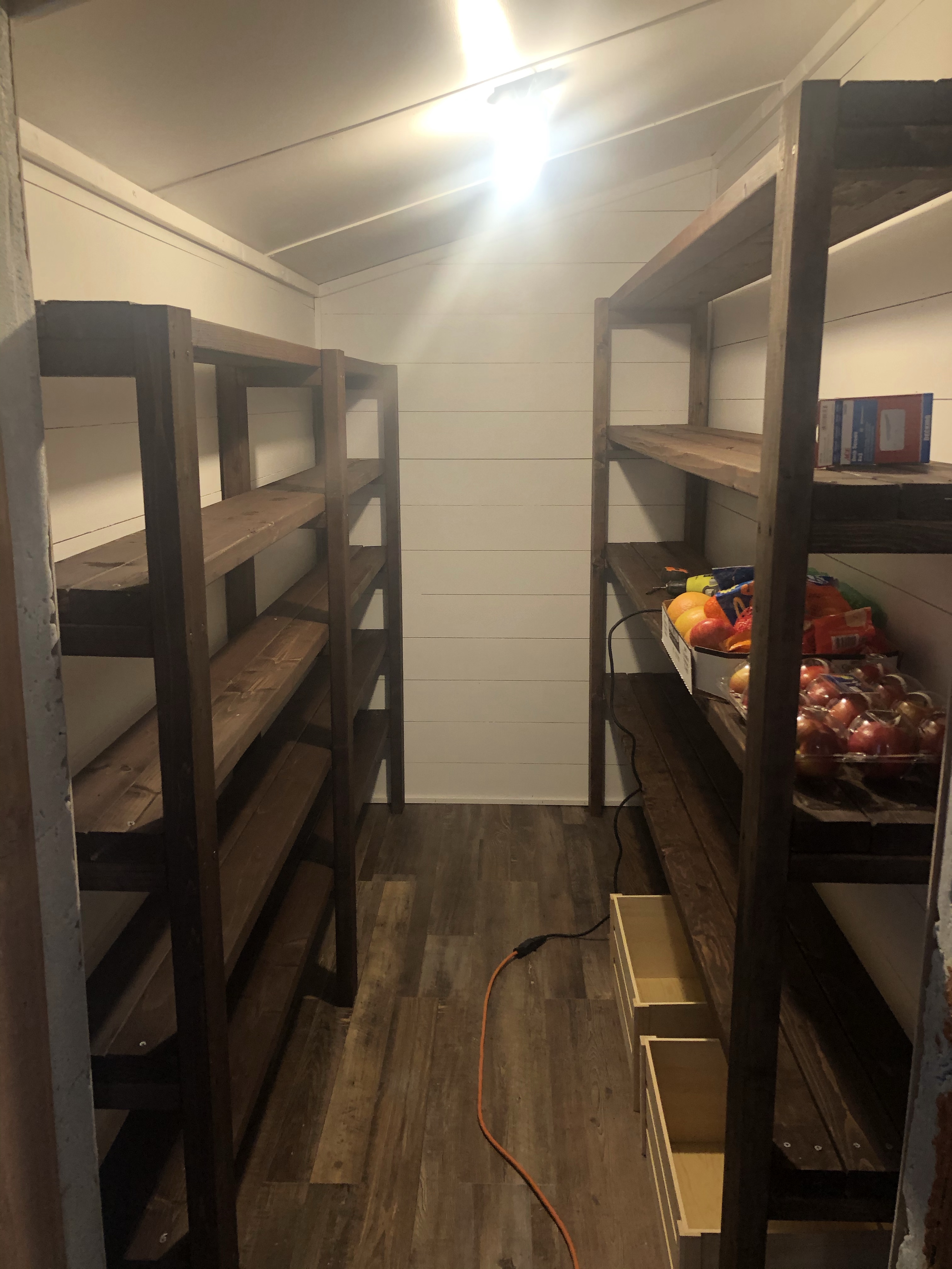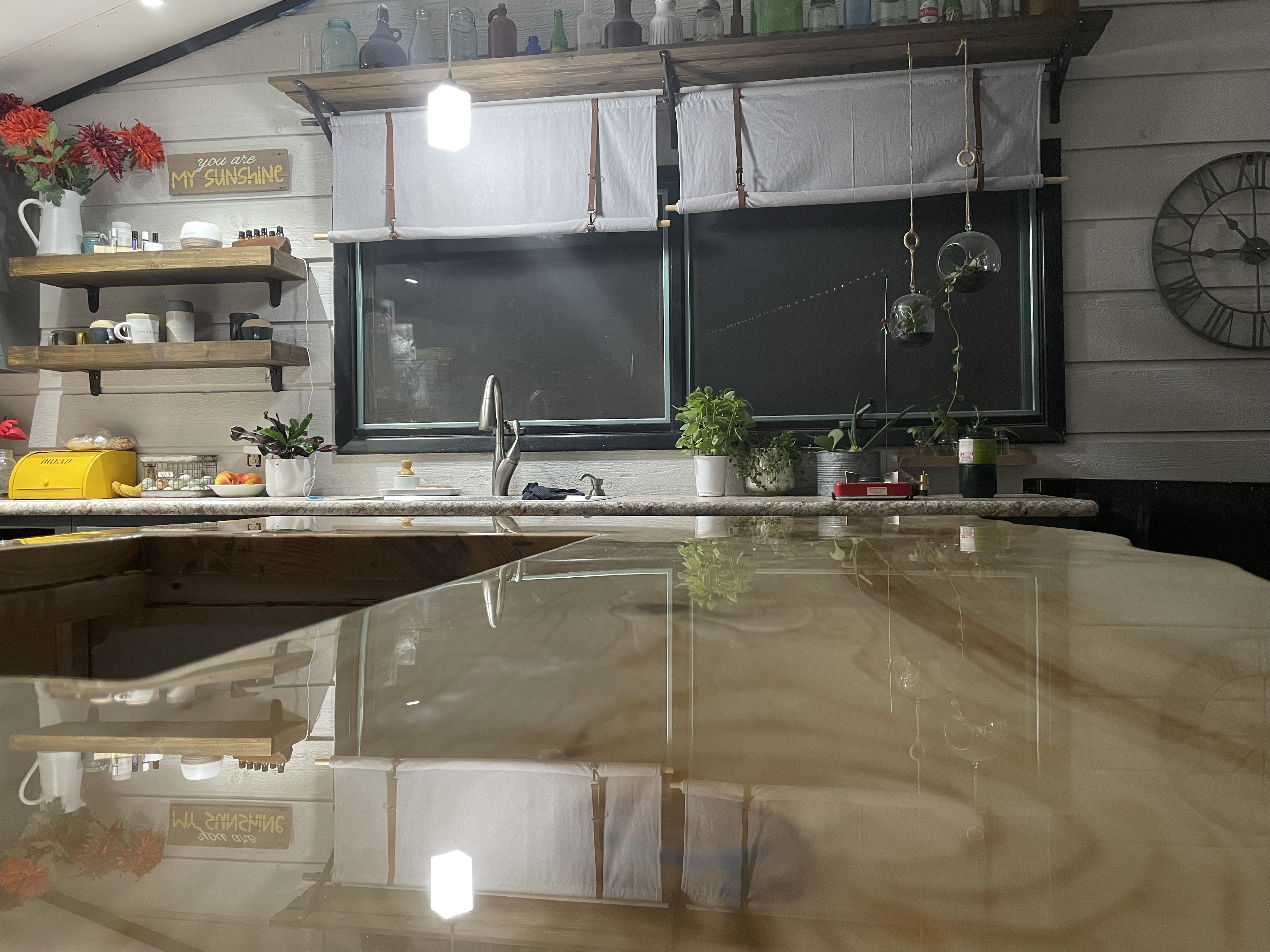 I guess since we are approaching the one year mark for moving into our house, we should give you all an update and a few pics. While some of us miss the nomadic life, we are all enjoying the creativity of making this house our home, as well as the adventure of learning to homestead. Our house is an older, half A-frame style home built in the 70’s. It was a couple rooms short, needed a bit of work all the way around, and had a water loss the week after we moved in, so we have been pretty busy. Because of the water loss, the kitchen and dining room got the attention first. Insurance covered new floors, we painted the cedar siding walls, then rebuilt and painted the cabinet doors and drawers and built a new island. I still have a few cabinet doors left to build and someday I would love to build my own table, but for now, here are a few before and after pics.